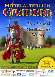 Bereits seit 2008 öffnet das Mittelalterlich Gaudium seine Pforten kostenfrei für Jung und Alt, um allen Interessierten vier Tage voller Mittelalter-Flair bieten zu können. An zahlreichen Marktständen werden verschiedenste Waren angeboten, diverse Essens- und Getränkeangebote laden zum Verweilen ein, Musikgruppen und Gaukler sorgen für Entertainment und auch für die kleinen Gäste gibt es immer eine Menge zu entdecken.