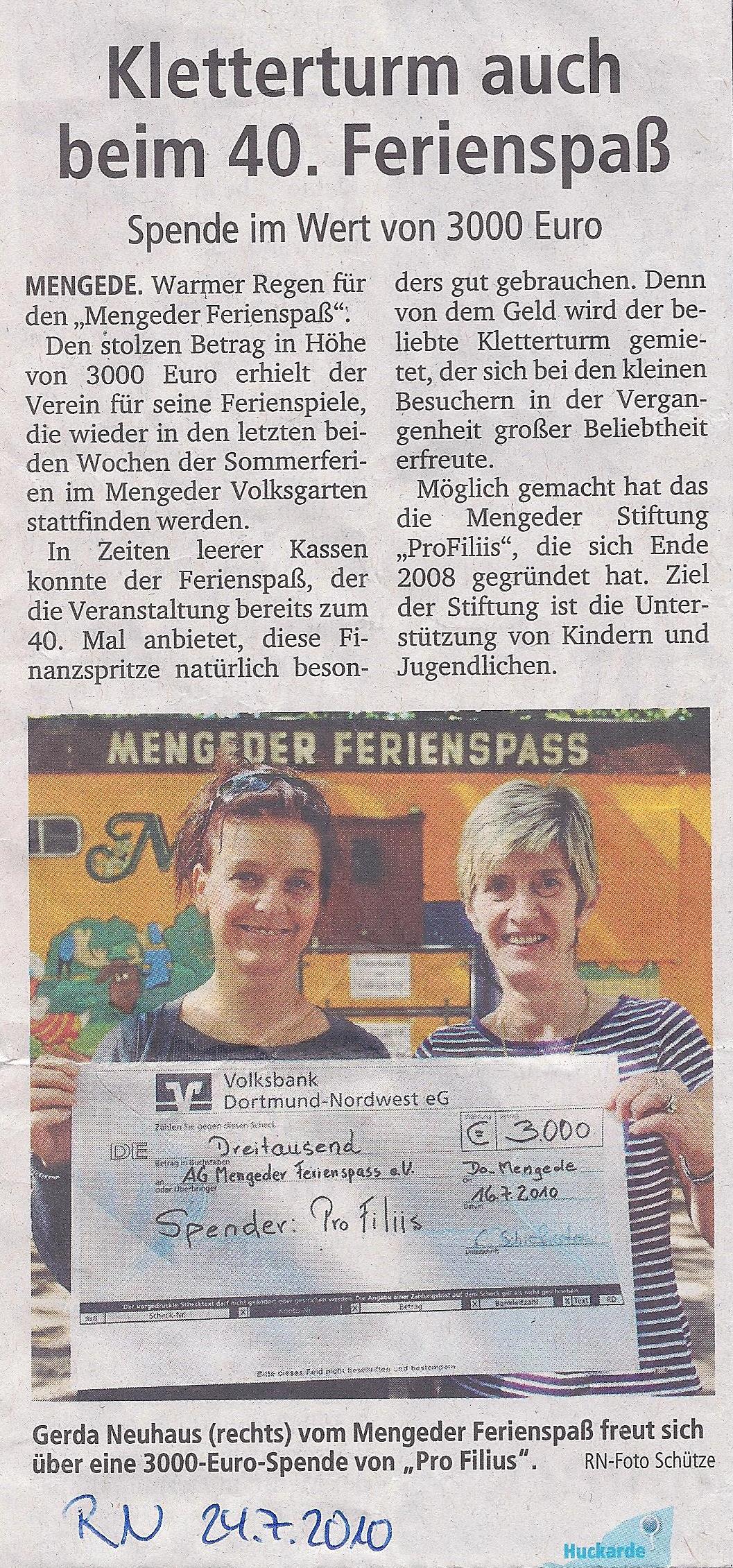ProFiliis fördert Kletterturm für den Mengeder Ferienspaß