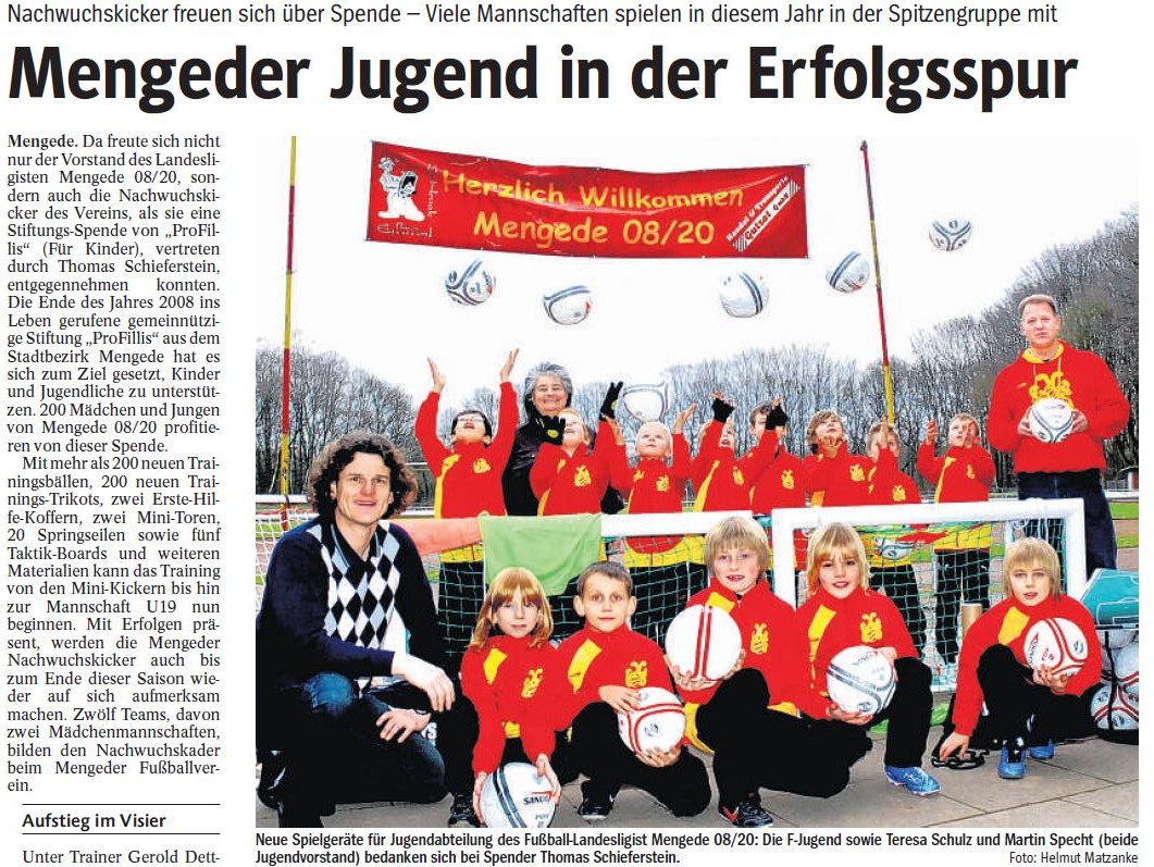 ProFiliis unterstützt die Jugendabteilung von Mengede 08/20