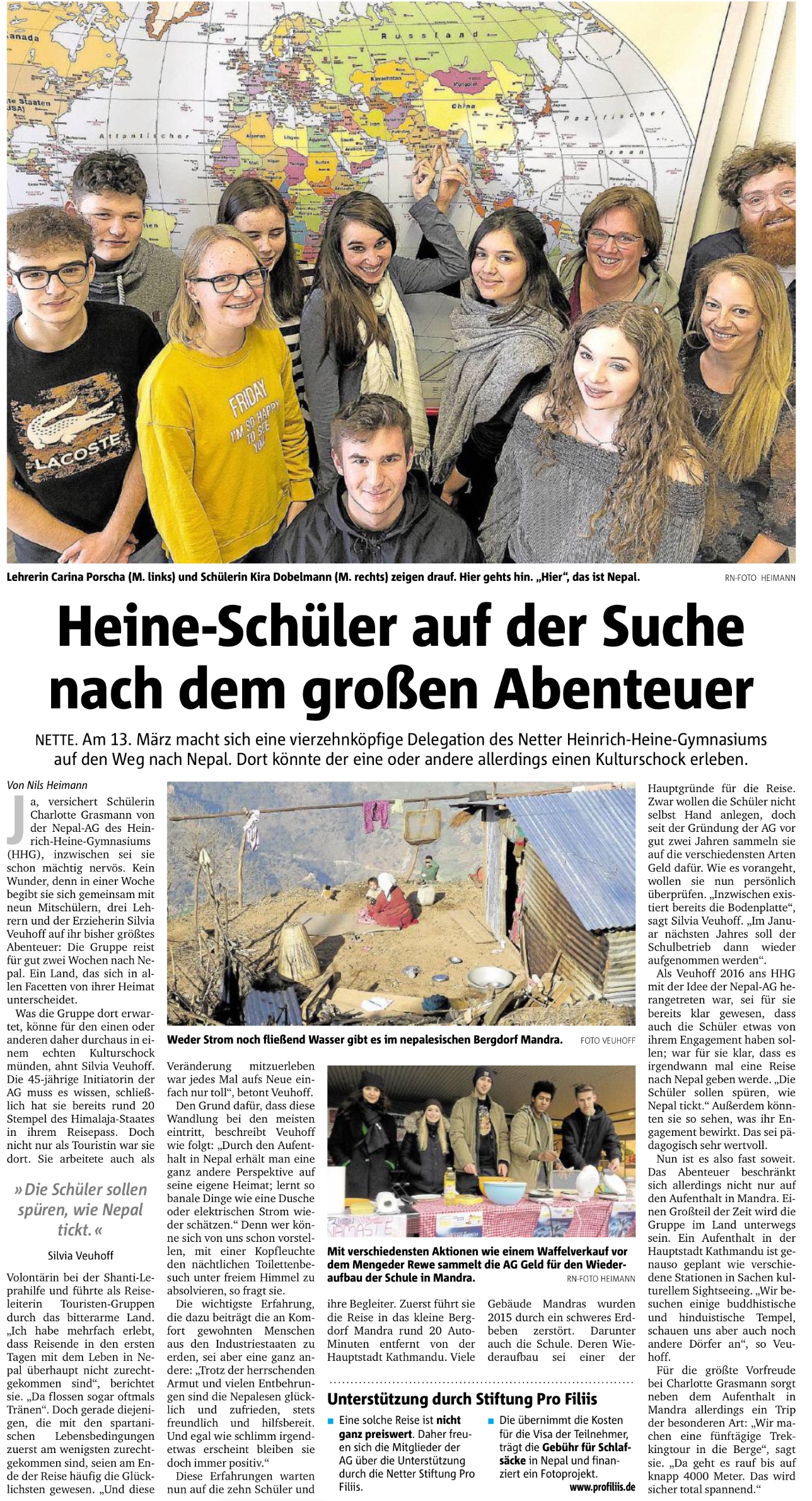 ProFiliis unterstützt Reise der Nepal-AG "HHG hilft"