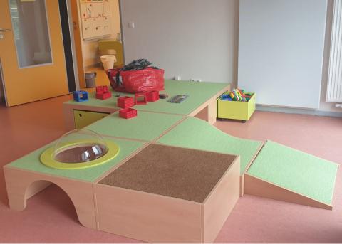 Nachdem die Idee für die Umgestaltung des Raumes aufgekommen war, wendete sich das Kita-Team an den Förderverein der Kita Erdbeerfeld e. V.. Der Förderverein unterstützt die Kita in ihrer sozialen, pädagogischen und kulturellen Arbeit über finanzielle Zuschüsse für Feste, Ausflüge und Anschaffungen. Da sich der Mittelbedarf für die Einrichtung des Multifunktionsraumes auf knapp über 5.000,- Euro belief, fragten die Verantwortlichen des Fördervereins finanzielle Unterstützung bei der ProFiliis-Stiftung an. Da der Förderverein rund 700 Euro als Eigenmittel eingebracht hat, konnte ProFiliis das Projekt mit einer Förderzusage in Höhe von rund 4.400,- Euro ermöglichen. Seit Dezember 2020 ist der Raum nun mit all seinen neuen Funktionen in Benutzung.