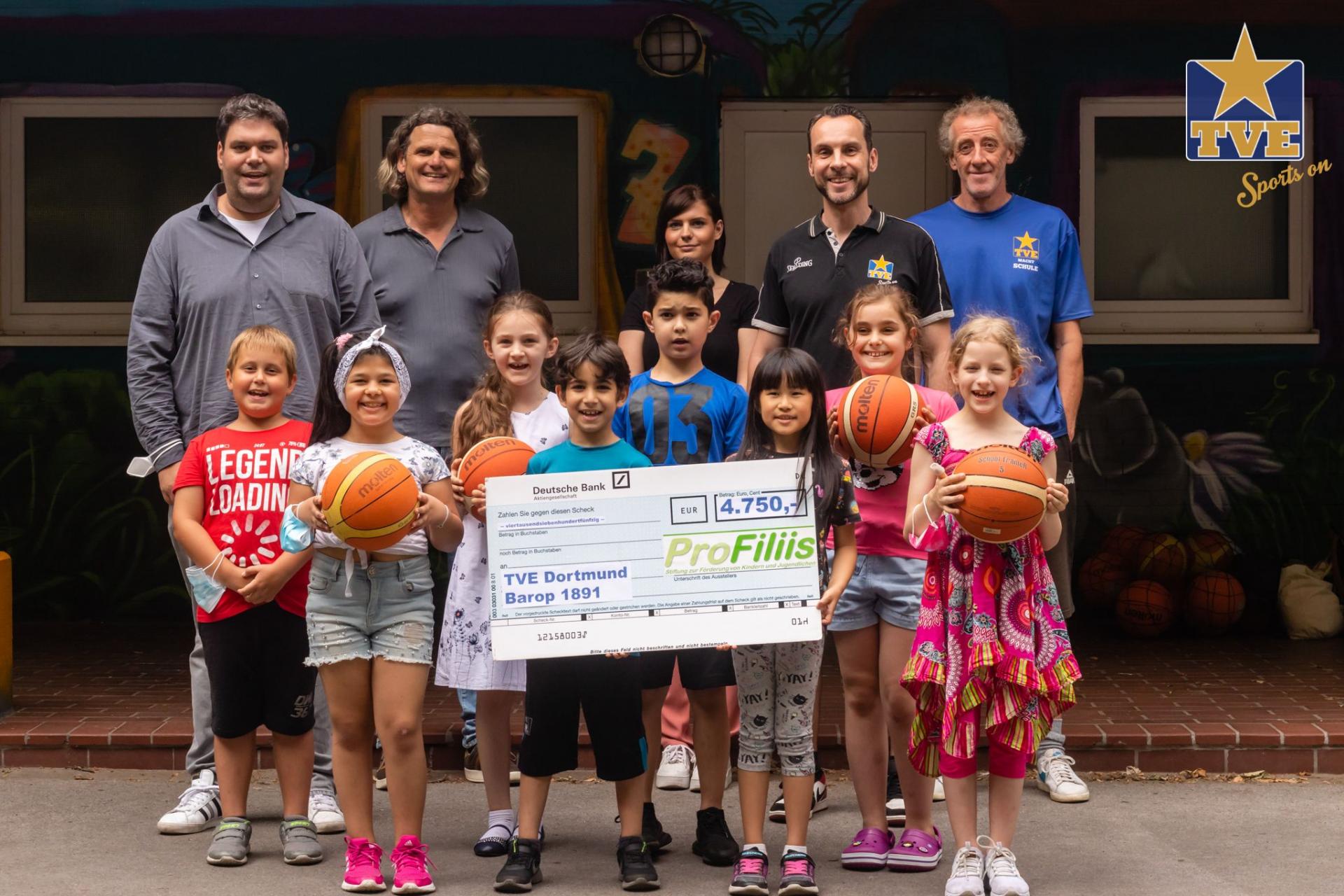 Bisher wurde das Projekt „TVE macht Schule“ zu großen Teilen von der Abteilung „Talentsicherung/Talentförderung“ beim Landessportbund finanziert. Nun gab es eine inhaltliche Neuausrichtung und seit dem Schuljahr 2020/21 erhält der TVE Dortmund-Barop keine Fördermittel mehr vom Land NRW für das Projekt. Aus diesem Grund wendete sich der TVE an die ProFiliis-Stiftung, die das Projekt bereits im Schuljahr 2015/16 unterstützt hat. ProFiliis sagte dem Verein finanzielle Hilfe zu, sodass der Fortbestand des Projektes auch unabhängig von der Förderung des Landessportbundes vorerst gesichert ist. Mit 3.750,- Euro können 250 Einsätze von Übungsleiter:innen im Sportunterricht bzw. in den AGs finanziert werden. Zudem wurden 1.000,- Euro für Trainingshilfen (u. a. Bälle, Ballnetze, Springseile) bereitgestellt.