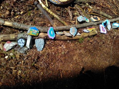 „Beim gemeinsamen Picknick werden die Leckereien und Ansichten/Gedanken geteilt. Z.B.: fragte ein Kind sich selbst und die Gruppe; " wie der Baum sich wohl fühlt, wenn er direkt neben seinen toten Brüdern steht, die alle um ihn herum liegen?" Es ist eine ungewöhnliche Frage und zeigt wie sehr das Thema Tod und Sterben für die Kinder präsent ist.“