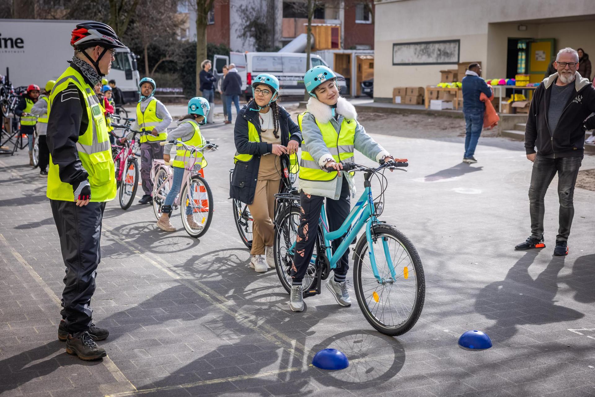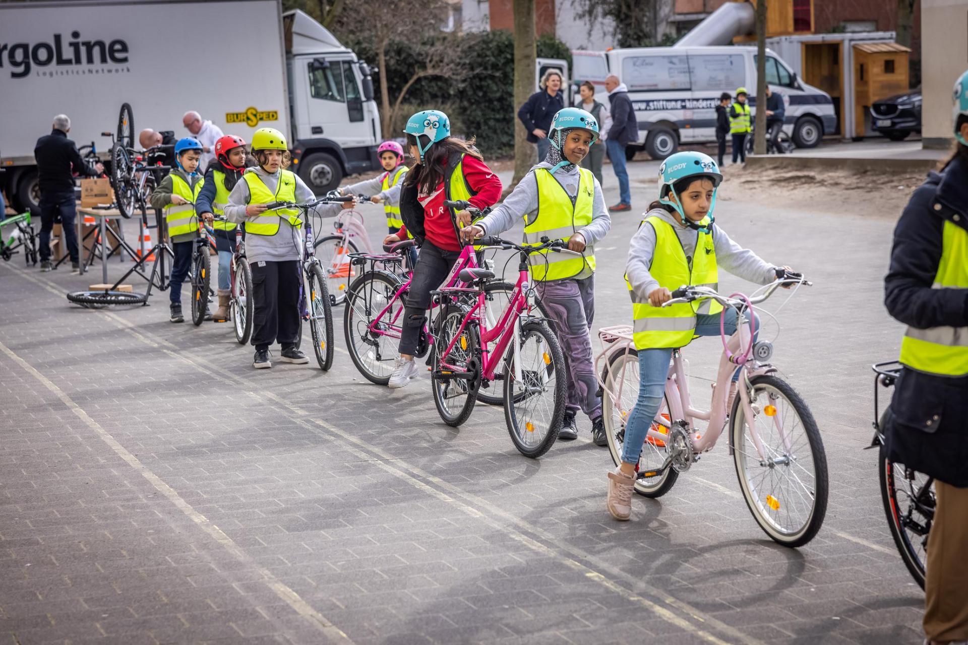 Bei der direkten Antragstellung durch die Grundschulen sieht der Ablauf etwas anders aus: Nach der Übergabe der Räder an die Schulen wird das Radfahrtraining für die Viertklässler:innen in Kooperation mit der Polizei auf dem Schulhof und im Straßenverkehr durchgeführt. Da ca. 60-80 % der Schüler:innen in den sogenannten Brennpunktschulen kein funktionstüchtiges oder passendes Fahrrad besitzen, können die Kinder die Fahrräder dann nach der Radfahrausbildung behalten.