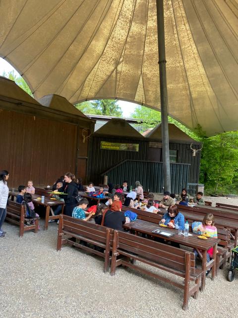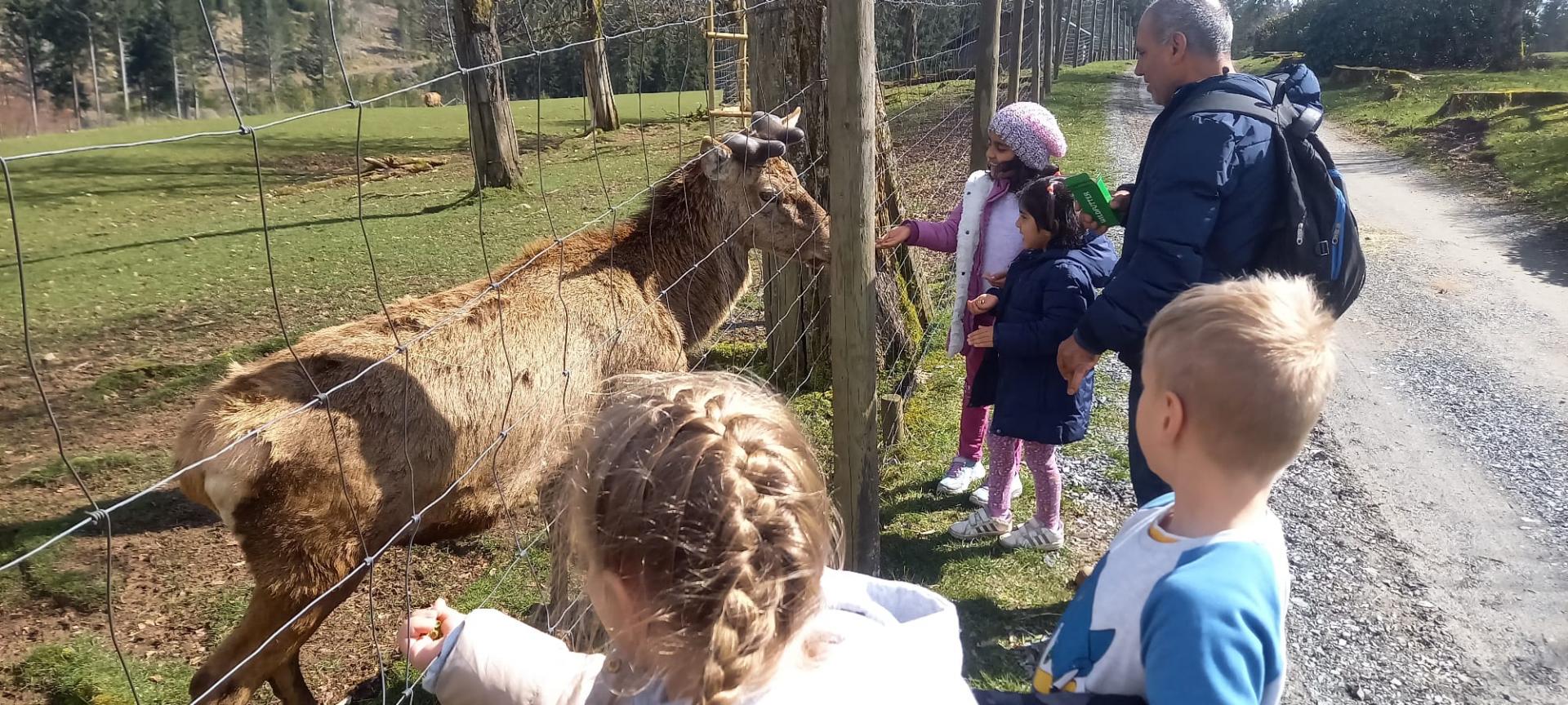 „Bei den sehr unterschiedlichen Ausflugszielen kamen die Kinder mit Wild- und Waldtieren in Berührung, konnten manche streicheln und füttern oder auch nur beobachten. Sie lernten die bunte Welt der Kunst kennen. Sie erfuhren, wie unsere Erde lange vor unserer Zeit aussah und welche Tiere damals lebten und lernten, was Stalaktiten und Stalagmiten in Tropfsteinhöhlen sind. Alle Sinne waren gefragt bei den Klangexperimenten, optischen Täuschungen und Tasträtseln in der Phänomania, Mitmachen stand hier im Vordergrund. Das Verständnis für physikalische, chemische und biologische Vorgänge wird hier gefördert. Aber auch Spielen, Lachen und Toben kamen nicht zu kurz (z.B. Monkey Town). In den Pausen waren Getränke, Snacks und kleine Mahlzeiten willkommen oder es folgte wie nach dem Besuch der Phänomania eine Stunde bei Pizza und Pasta in unserem Panoramahaus.
