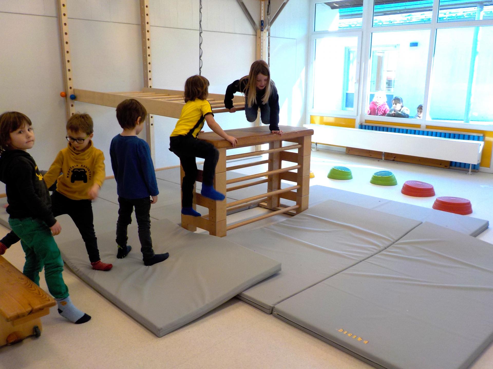 Im Zuge der Neueinrichtung des Bewegungsraums fiel auf, dass die vorhandenen Fallschutzmatten nicht mehr den aktuellen Standards entsprachen. Aus diesem Grund wendete sich der Förderverein erneut an ProFiliis mit der Bitte, die Mittel zur Neuanschaffung von sieben Matten bereitzustellen; denn: „Motorische Förderung bedeutet auch, zu lernen mutig und sicher zu agieren. Kinder setzten sich kreativ mit den Bewegungsanlässen auseinander und lernen, in diesen Risiken richtig einzuschätzen. Zur Förderung von Risikokompetenz von Kindern, werden daher jedoch auch Absicherungen benötigt, die dem Bewegungsanlass angemessen sind.“ (dem Abschlussbericht entnommen)