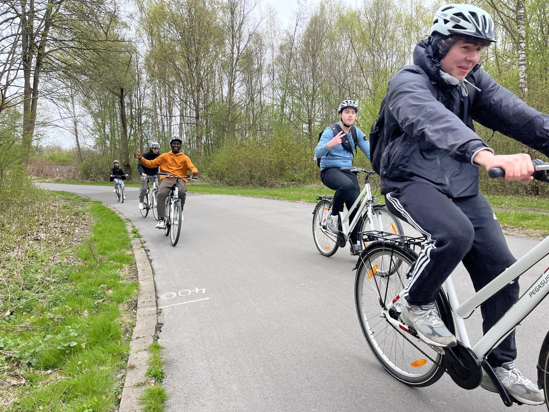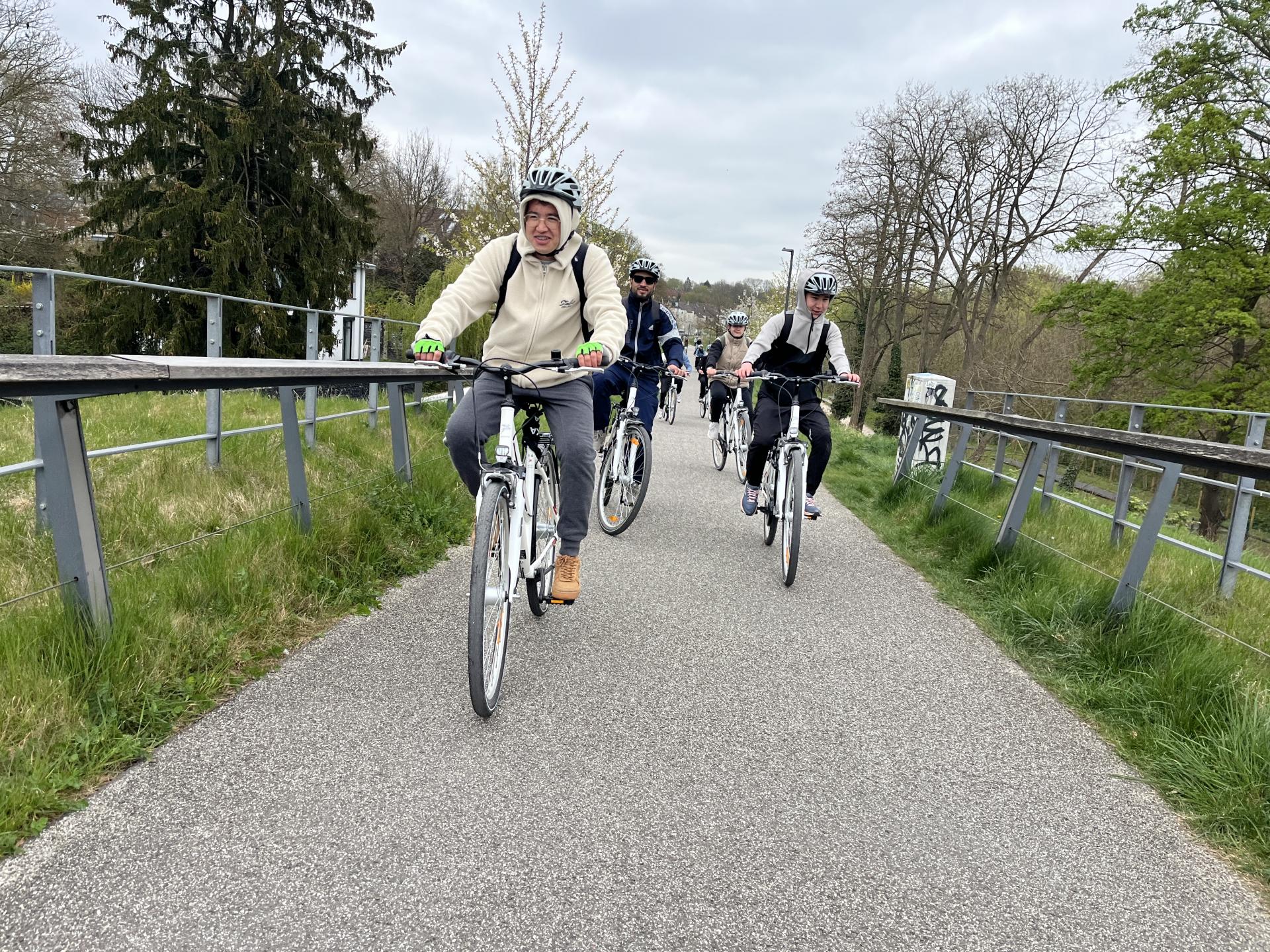 Aus diesem Grund will das Team vom Projekt „angekommen“ in Kooperation mit dem Robert-Schuman-Berufskolleg ab August 2024 ein Fahrradprojekt etablieren. Den Schüler:innen werden für den „Fahrradunterricht“ passende Fahrräder bereitgestellt, mit denen sie dann Schritt für Schritt das Fahrradfahren lernen: „In strukturierten Unterrichtseinheiten und Workshops werden zunächst in gesicherter Umgebung die motorischen Grundlagen erlernt. […] Durch das darauffolgende Sicherheitstraining stellen wir sicher, dass sich die Jugendlichen im Straßenverkehr angemessen verhalten und Gefahrensituationen richtig einschätzen.“ (Auszug aus dem Förderantrag) Anschließend werden gemeinsame Ausflüge unternommen, bei denen die Schüler:innen auch längere Strecken mit dem Fahrrad zurücklegen und die Umgebung besser kennenlernen. Im Sinne der Integration der geflüchteten Schüler:innen können auch deutsche Schüler:innen an den Ausflügen teilnehmen.
