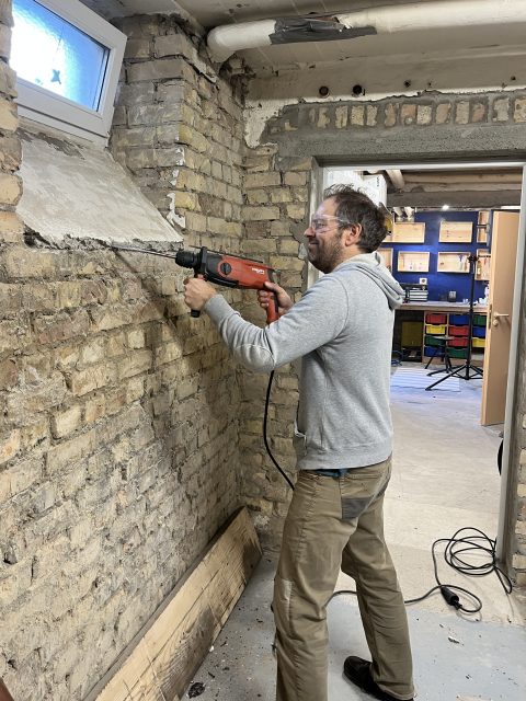 Als Ort zur Unterbringung der „Fahrrad-Flotte“ war der Keller von Adam’s Corner ausgesucht worden. Hier finden Angebote für zugewanderte Jugendliche im Übergang von Schule in Beruf statt und es besteht eine gute Vernetzung mit den Dortmunder Berufskollegs. Hier kam Torre Timpte, Lehrer am Robert-Bosch-Berufskolleg und als abgeordnete Lehrkraft bei Adam’s Corner aktiv, ins Spiel: Er entwicklete ein Konzept für die Umgestaltung und Renovierung des Kellers, sodass dieser sinnvoll für den Fahrradunterricht genutzt werden kann.