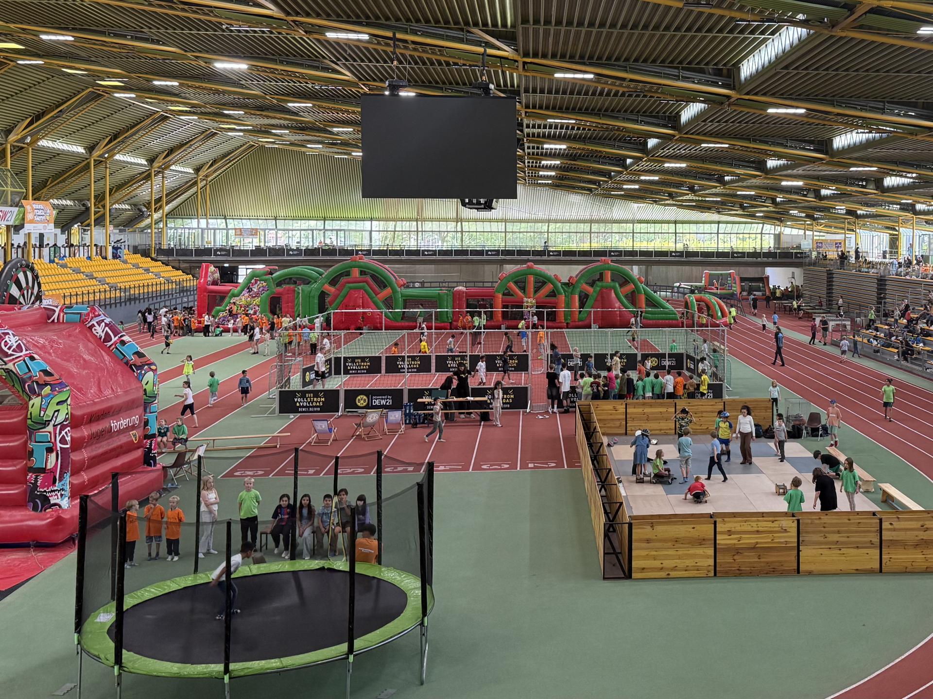 30 verschiedene Sport-, Spiel- und Kreativstationen lockten die jungen Besucher:innen aus ganz Dortmund an, um hier einige fröhliche Stunden zu verbringen. Über Fußball, Basketball und Hockey bis hin zu Minigolf blieben keine sportlichen Wünsche offen. Zusätzlich konnten sich die Kinder und Jugendlichen auf einer Hüpfburg austoben. Aber auch für alle, die lieber kreativ werden, war bestens gesorgt: Bastel- und Farbstationen erlaubten jede Menge künstlerischen Spaß.