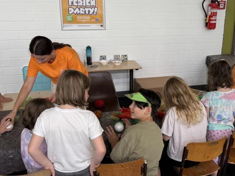 Aktion „Gesundes Kochen mit Kindern“: Kinder, die beim Kochen gesunder Mahlzeiten einbezogen werden, können nicht nur ein deutlich besseres Verständnis für Lebensmittel und gesunde Ernährung entwickeln, sondern auch Fähigkeiten, die beim Kochen wichtig sind, wie Planung und Geduld. Bei der Kinder-Ferien-Party wurden gemeinsam mit einigen Kindern verschiedene Speisen zubereitet und anschließend zusammen probiert.