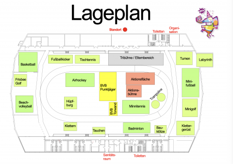 Ungefähr 30 verschiedene Sport-, Spiel- und Kreativstationen locken die jungen Besucher:innen aus ganz Dortmund an, um hier einige fröhliche Stunden zu verbringen. Über Fußball, Basketball und Hockey bis hin zu Minigolf bleiben hier keine sportlichen Wünsche offen. Zusätzlich können sich die Kinder und Jugendlichen auf einer Hüpfburg austoben. Aber auch für alle, die lieber kreativ werden, ist bestens gesorgt: Bastel- und Farbstationen versprechen jede Menge künstlerischen Spaß.