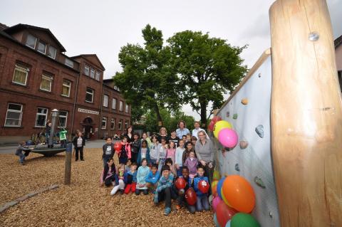 Auf Initiative der Funke Grundschule und des Fördervereins wurde auch hier die Idee geboren, den Kindern mit einer Kletterwand eine zeitgemäße Spielmöglichkeit zu bieten.
