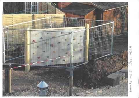 Obwohl die Wand bereits im letzten Jahr schon aufgebaut wurde, verzögerte sich die Einweihung der Boulderwand. Denn als der Fallschutz hergestellt werden sollte, stellte man fest, dass die Wurzel des zuvor dort stehenden Baums nicht tief genug ausgefräst worden war. Also musste die Wand abgebaut und die Wurzel erneut ausgefräst werden.