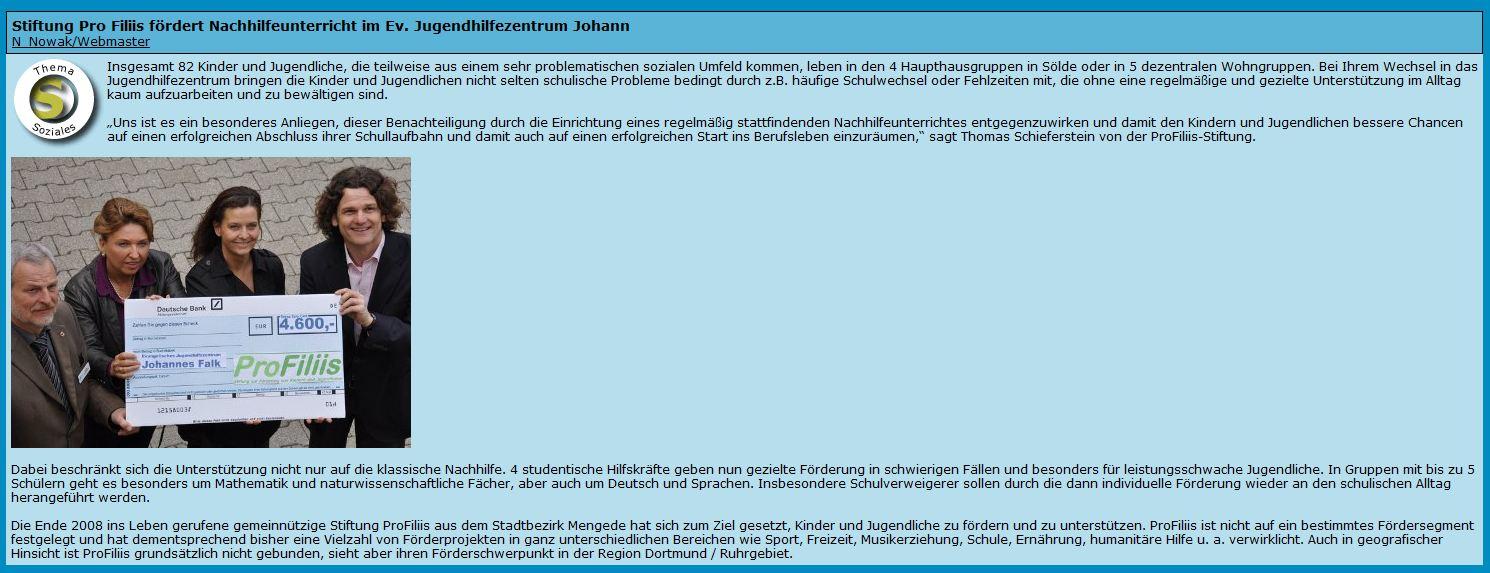 Da es nicht möglich war, aus Budget-Mitteln angemessen Abhilfe zu schaffen, hat ProFiliis in 2010 die Bereitstellung von Mitteln bis zu 4.600,- Euro jährlich für die direkte Kosten des folgenden Nachhilfekonzeptes verbindlich zugesagt:
