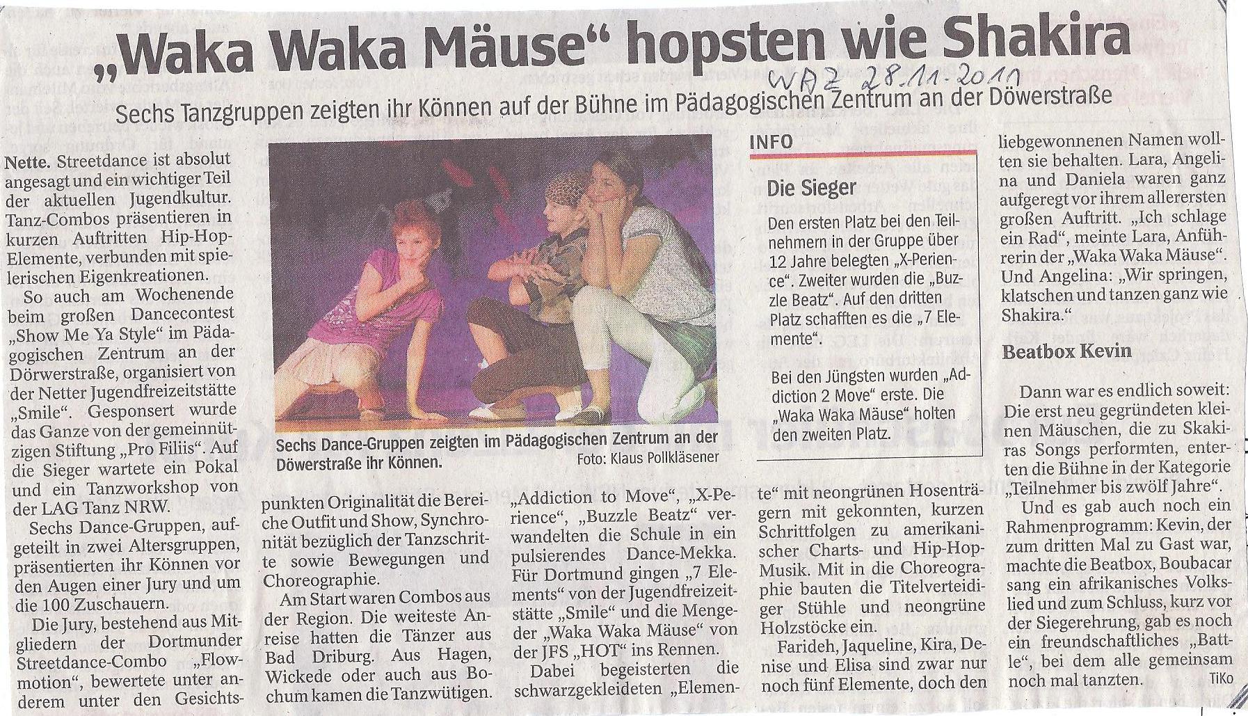 Der Dance Contest ist Ort des Kennenlernens 'Gleichgesinnter', dient zum Informationsaustausch und auch zur Inspiration. Nach den sehr erfolgreich verlaufenen vorjährigen Streetdance - Events in Nette wird dieser langsam zur Traditionsveranstaltung. Die Jugendfreizeitstätte SMILE will auch 2012 ein solches Event durch führen, nicht zuletzt um damit einen weiteren Beitrag zur Bereicherung der Jugendkulturszence im Stadtteil zu leisten.