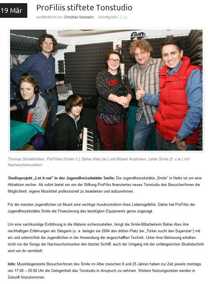 Die Jugendfreizeitstätte Nette `Smile´ ist um eine Attraktion reicher: Ab sofort bietet ein neues Tonstudio den BesucherInnen die Möglichkeit, eigene Musiktitel professionell zu bearbeiten und einzuspielen.