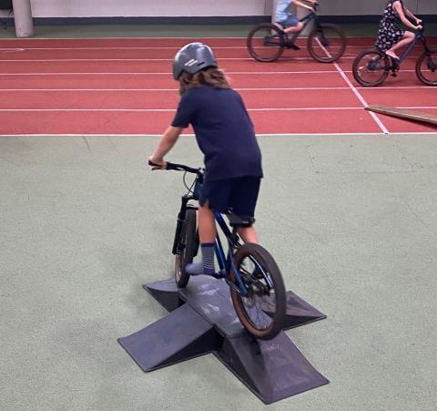 Das Bike-Training wurde wie schon im Vorjahr gemeinsam mit der Bikeschule „Fun-Ride“ durchgeführt. Neben Tipps und Tricks für das „normale“ Fahrradfahren erhielten die Kinder hier auch Einblicke in die Bereiche Mountainbiken und BMX. Die Anleiter:innen bauten je nach Fertigkeiten der Teilnehmenden verschieden schwierige Parcoure auf und unterstützten die Mädchen und Jungen dabei, diese zu meistern. Dafür standen neben normalen Fahrrädern auch Mountainbikes und BMX-Räder zur Verfügung, sodass die Kinder auch diese ausprobieren konnten.