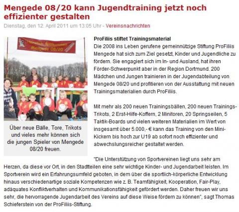 Die Unterstützung von Sportvereinen liegt ProFiliis sehr am Herzen, da diese vor Ort, in den Stadtteilen eine sehr wichtige Kinder– und Jugendarbeit leisten. Im Sportverein wird ein Erfahrungsumfeld geboten, in dem über die sportlich-körperliche Entwicklung hinaus verschiedenartige soziale Kompetenzen wie z. B. Teamfähigkeit, Kooperation, Fair-Play, adäquates Konfliktverhalten und Kommunikationsfähigkeit gefördert werden.