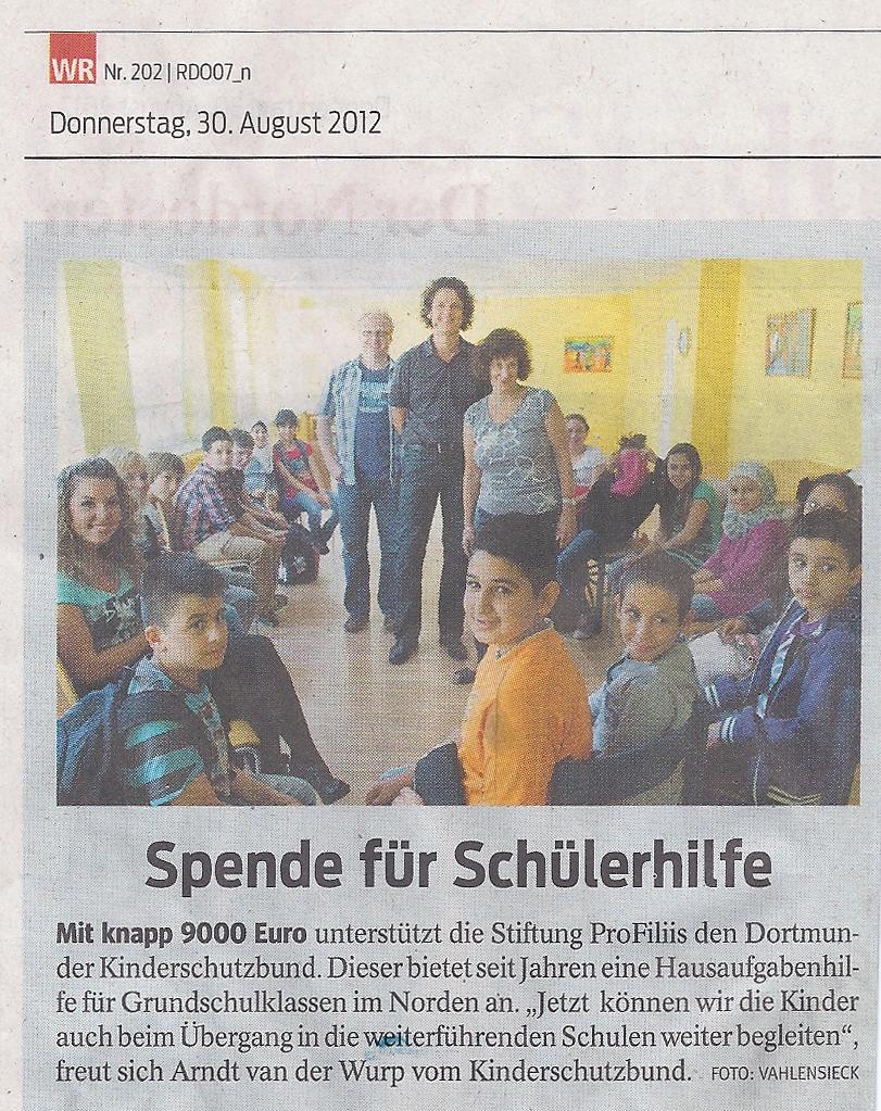Der Kinderschutzbund wurde auch in diesem Jahr wieder im üblichen Rahmen von ProFiliis unterstützt, sodass die Hausaufgabenbetreuung weiterhin stattfinden kann, wo Jungen und Mädchen Hilfe finden.